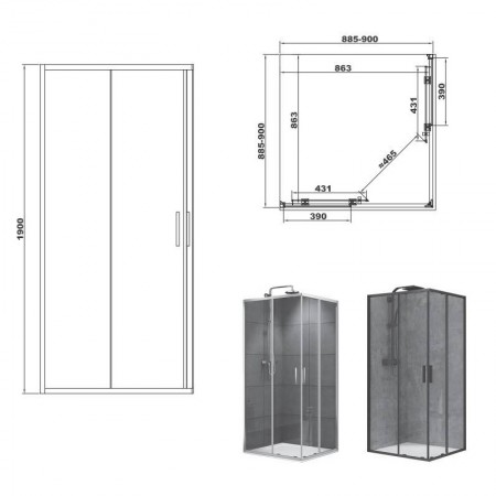 FEN2140 ART 2.0 Кабіна душова, квадратна, розсувна, колір - хром, 900*900, без піддона, скло прозоре