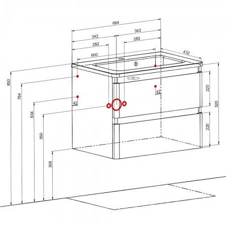 7764 Тумба Акцент (сірий мармур) з умивальником Альфа 60 см (консольна) (1 сорт)