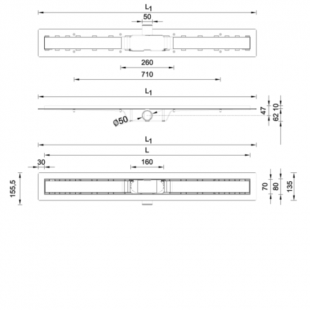 STY-M-50-FF Душовий канал з чорною решіткою Медіум, 500 мм (1 сорт)