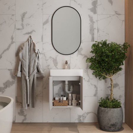 484060G Flow Тумба 60 з умивальником та ручками, сірий матовий (1 сорт)